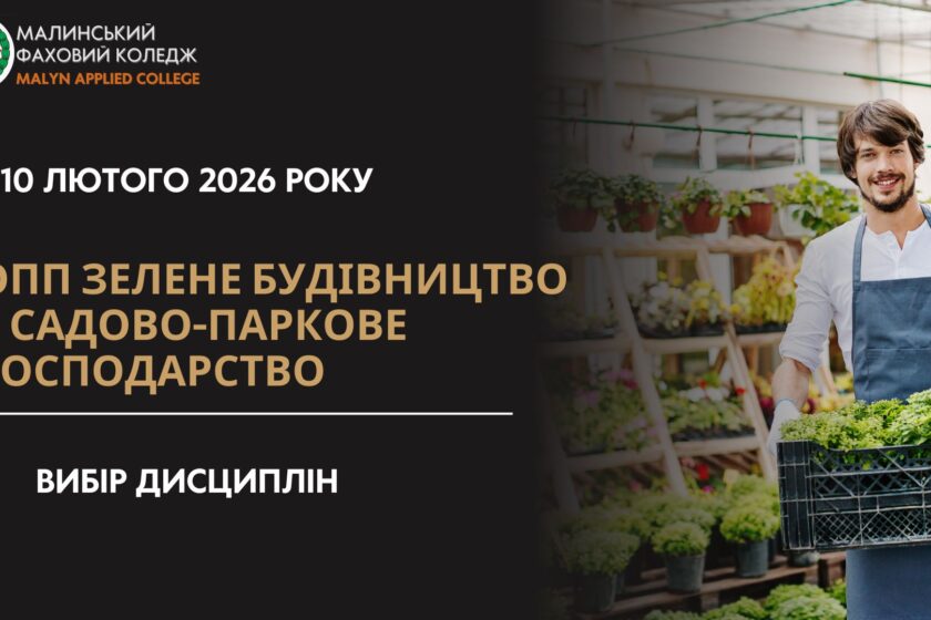 10 лютого здобувачів освіти за ОПП Зелене будівництво та садово-паркове господарство запрошуємо долучитися до презентації дисциплін вільного вибору, яка відбудеться у змішаному форматі.