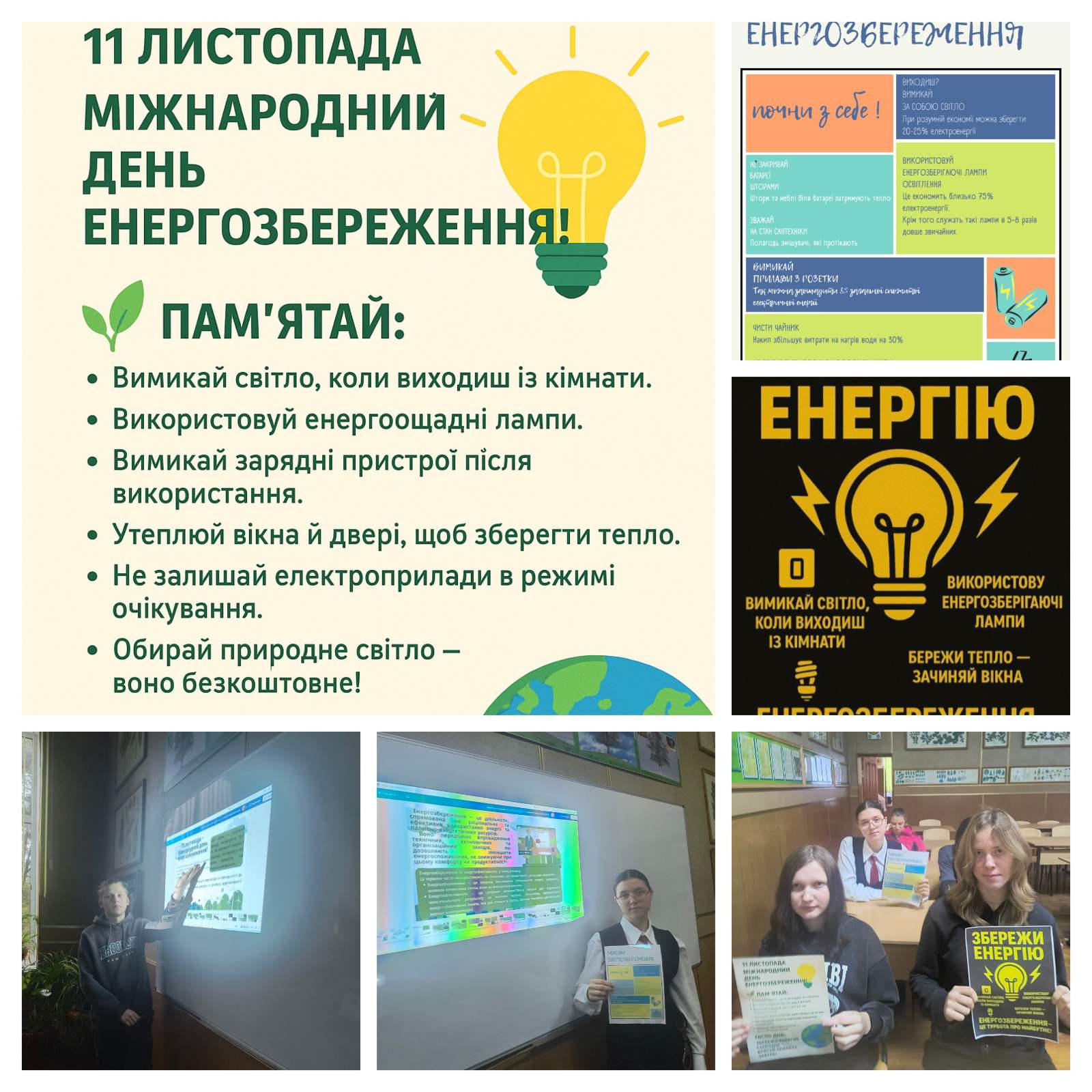 У рамках заняття студенти підготували інформаційні плакати, присвячені заходам енергозбереження. На своїх творчих роботах вони відобразили практичні поради щодо ефективного використання енергії в побуті та на виробництві, популяризували ідеї «зеленої» енергетики та відповідального ставлення до довкілля. Такі заняття виховують у молоді відповідальність за стан навколишнього середовища та показують, що енергозбереження – це реальний шлях до гармонії між людиною і природою.