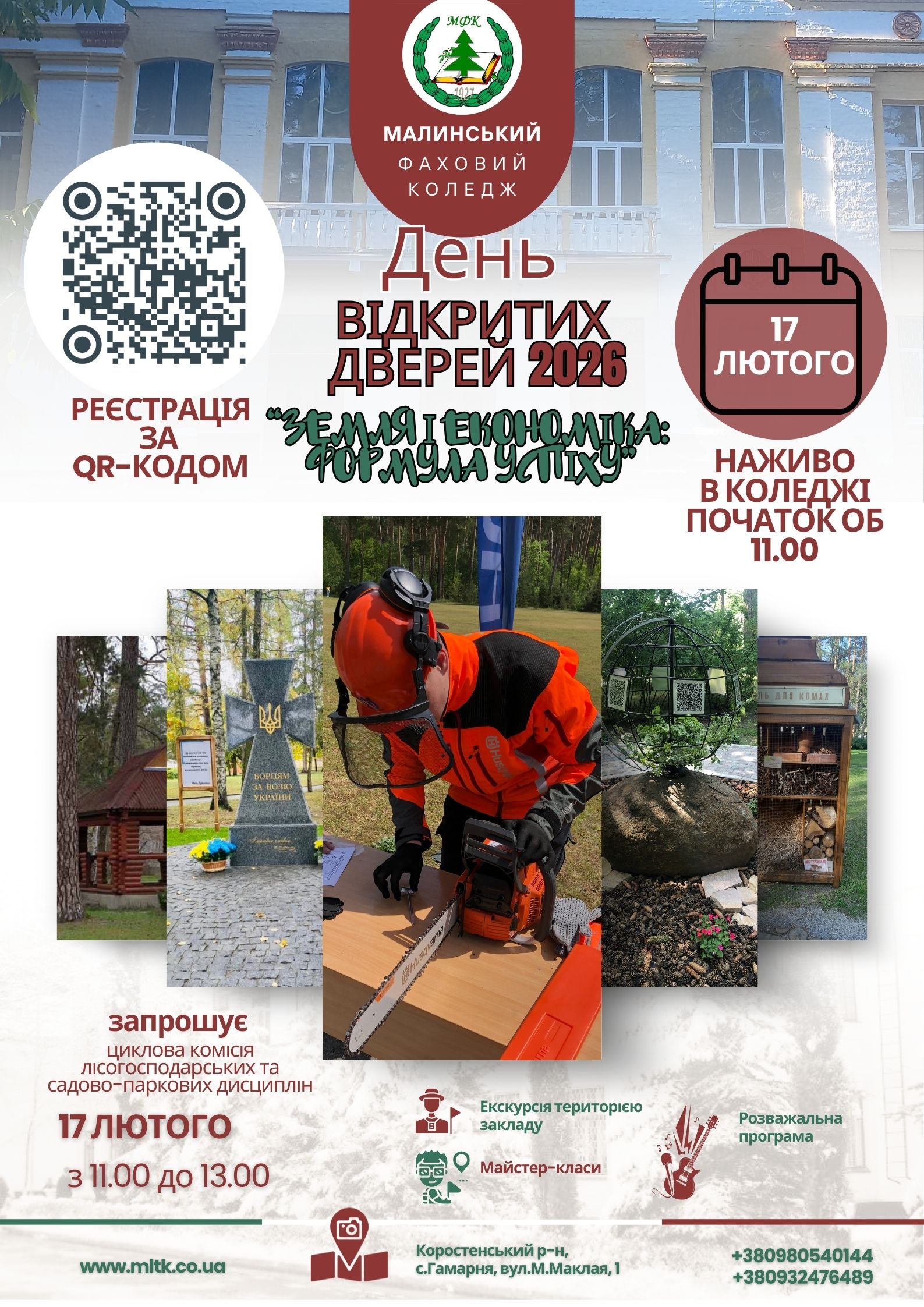 Запрошуємо всіх охочих на День відкритих дверей, який відбудеться 17 лютого 2026 року з 11.00 до 13.00 під гаслом “Земля і економіка: формула успіху”.
