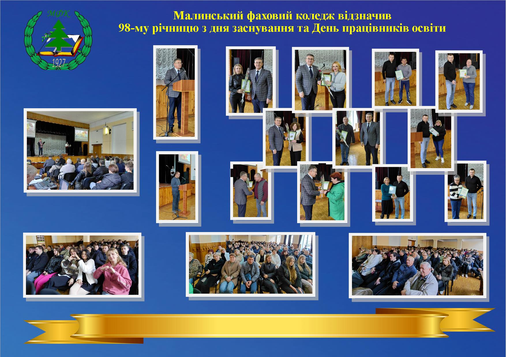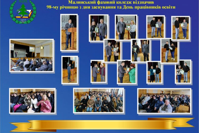 У стінах Малинського фахового коледжу відбулася знакова подія — урочистості з нагоди 98-ї річниці від дня заснування закладу та святкування Дня працівників освіти. Цей день поєднав у собі історію та сучасність, працю багатьох поколінь педагогів і нові здобутки колективу.