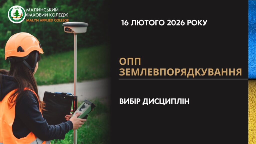 Враховуючи вищевказане, на базі Малинського лісотехнічного коледжу (на даний час Малинський фаховий коледж), було започатковано підготовку фахівців ОПП «Землевпорядкування». Вперше проведено набір на дану спеціальність у 2014 році та створено циклову комісію землевпорядних дисциплін, яку очолив Михайло ЛАФРЕНКО - спеціаліст вищої категорії, із серпня 2022 року головою циклової комісії призначено Людмилу БЕРНАЦЬКУ, викладача спеціальних дисциплін, спеціаліста вищої категорії, яка з 2004 року по 2021рік займала посаду директора Малинського міського комунального підприємства «Земельно-кадастрове бюро» та має 27 років досвіду роботи в землевпорядній службі в т. ч. 10 років педагогічного стажу.
