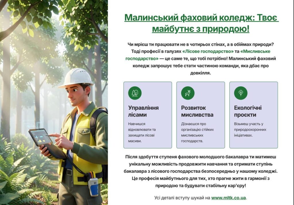 Випускник з професійною кваліфікацією «технік мисливського господарства» може працевлаштуватися на посади: 3212 Технік мисливського господарства; 3212. Інспектор з охорони природи; 3340 Майстер виробничого навчання; Інструктор виробничого навчання; 3436.3 Помічник керівника малого підприємства (без апарату управління); 3340 Інструктор виробничого навчання, лаборант (освіта), майстер виробничого навчання, майстер навчального центру, технолог– наставник, педагог професійного навчання.