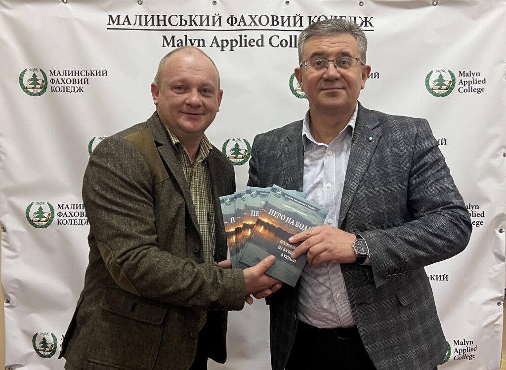 Письменник, мисливський волонтер, громадський діяч (ГС “УКРАЇНСЬКА ЛОВЕЦЬКА РАДА”) – Адріан Прокопенко презентував в бібліотеку Малинського фахового коледжу книгу “Перо на воді” (Полювання на качиних в Україні).