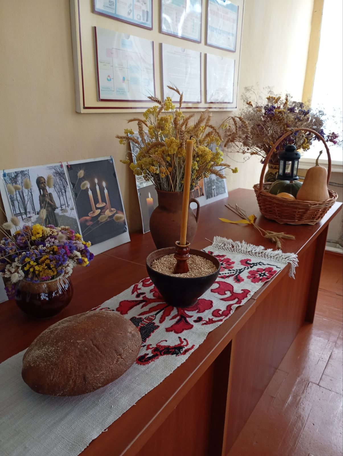 Голодомор.Чорна сторінка нашої історії.Він визволив найбільший людський страх – страх смерті. Адже поруч, на очах повільно і важко помирали рідні, знайомі, сусіди.Ніхто не рахував скільки людей духовно загинули в ті роки. Спогади про Голодомор настільки жахають, що ті, хто вижив, ладні були віддати все, аби це ніколи не повторилося. Але сам факт існування тих, хто пережив геноцид і не втратив волі до боротьби – промовисте свідчення, що Голодомор не вбив у українців волю до національного відродження.Саме відчуття сенсу життя і дає сили жити. Система кидала усю свою силу, щоб знищити, позбавити людей сенсу життя. Тому й вдалися до Голодомору, щоб зламати.Та ми вижили! Вижили тоді, переможемо й тепер! У бібліотеці коледжу розгорнуто куточок пам’яті про Голодомор в Україні.Щоб завжди пам’ятати і передати нащадкам, як знищували твій народ.