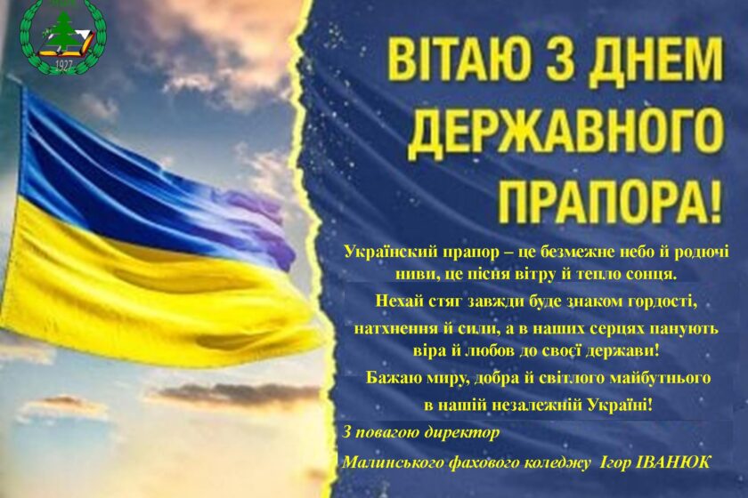Вітання директора Малинського фахового коледжу із Днем Державного Прапора.