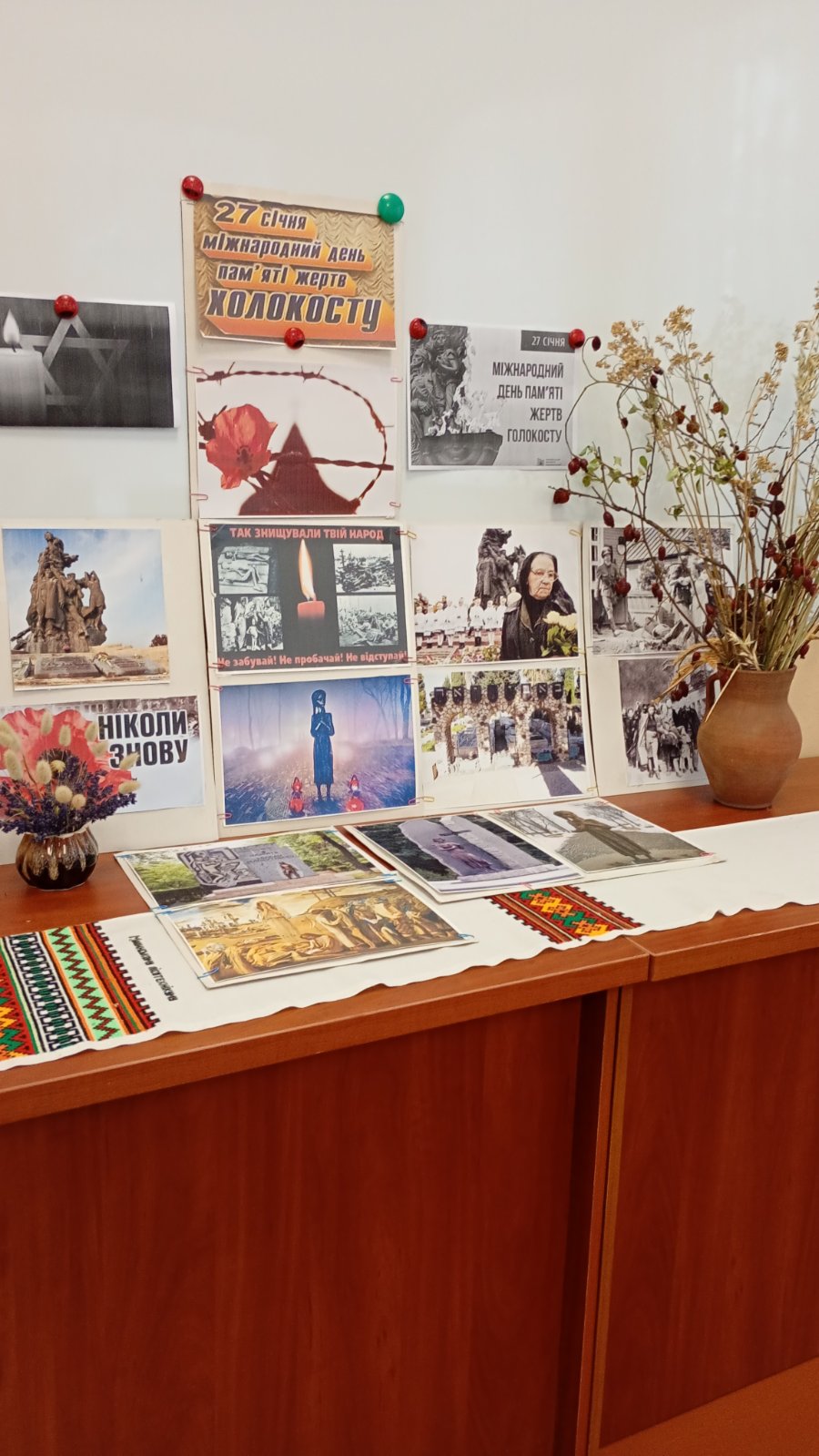 Однією зі світових катастроф 20-го століття був Голокост, який супроводжувався мільйонами вбитих, замучених нацистами під час Другої світової війни євреїв. В Україні налічувалось 420 гетто, з них – 60 % знаходилось на території республіки, а 40% в румунській зоні окупації. Бабин Яр, Сирецький концтабір, Голокост в Одесі – це найбільші місця вбивств євреїв. Голокост почався в січні 1933 року, коли до влади прийшов Гітлер, і фактично закінчився 8 травня 1945 року. У період між 1933 і 1945 роками під час Голокосту було вбито більше 11 мільйонів чоловіків, жінок і дітей. Приблизно 6 мільйонів з них були євреями. Сьогодні ми повинні памятати, що історію переписати ми ніколи не зможем, але зробити її кращою ми повинні. У читальній залі бібліотеки розгорнуто ілюстраційно-інформаційну виставку ” Гірка память Голокосту”.