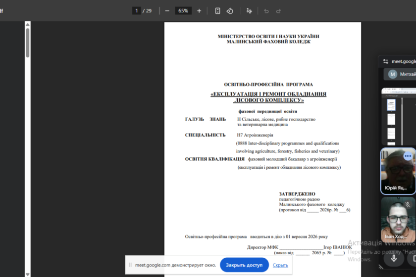 26.02.2026 р. у Малинському фаховому коледжі відбулося засідання робочої групи щодо обговорення та затвердження проєкту освітньо-професійної програми «Експлуатація і ремонт обладнання лісового комплексу» на 2026 рік. Головним пріоритетом оновлення став запит на «цифровізацію» галузі та посилення практичної складової, що базується на реальних відгуках провідних стейкхолдерів та випускників.