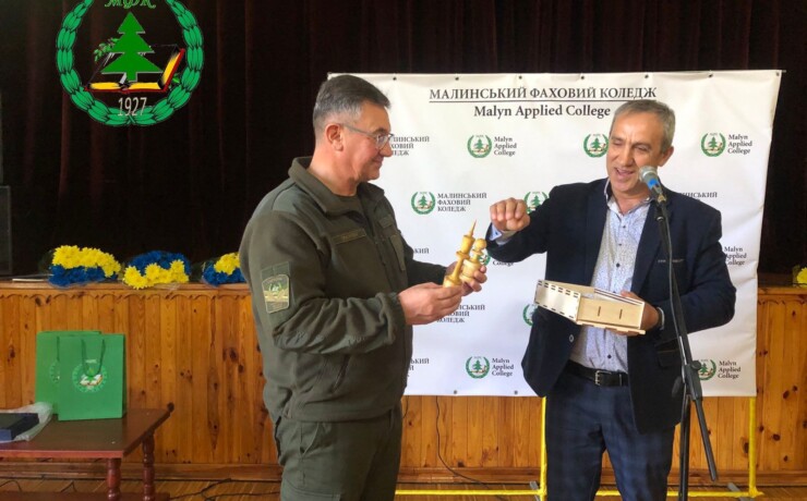 Також до присутніх в залі прозвучали слова вітання представників військового складу 10-тої окремої гірсько-штурмової бригади ” Едельвейс”, ДЕНИСОВЦЯ Юрія Миколайович — заступника голови Житомирської обласної державної адміністрації, СКИДАНА Олега Васильовича – ректора Поліського Національного університету, КОЛЕСНІКОВА Олега Борисовича – представника компанії STIHL в Україні. В рамках відзначення дня захисників відбулося покладання квітів до меморіалу “Борцям за свободу” на території коледжу та на цвинтарях у місті Малині полеглим воїнам за волю та свободу нашої України та Малинщини.