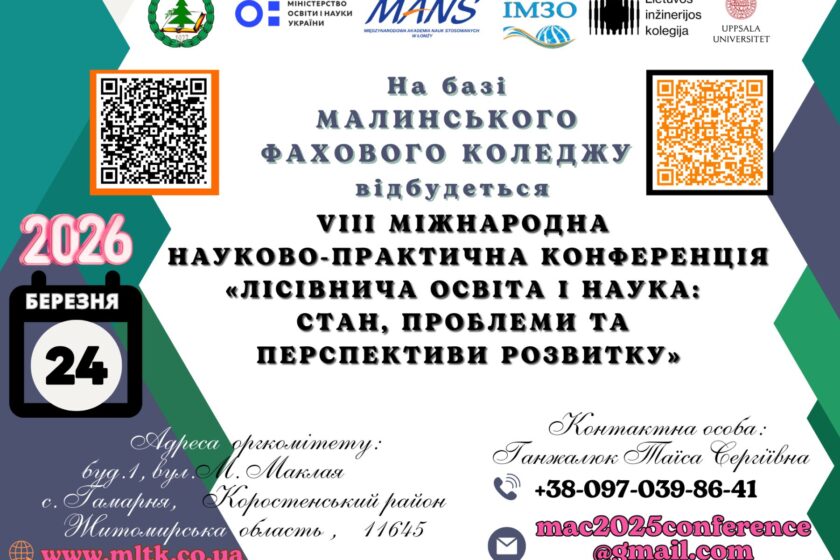24 березня 2026 року запрошуємо долучитись до VІІІ Міжнародної науково-практичної конференції «Лісівнича освіта і наука: стан, проблеми та перспективи розвитку». Трансляція буде відбуватись на You Tube. Сертифікати для зареєстрованих учасників […]
