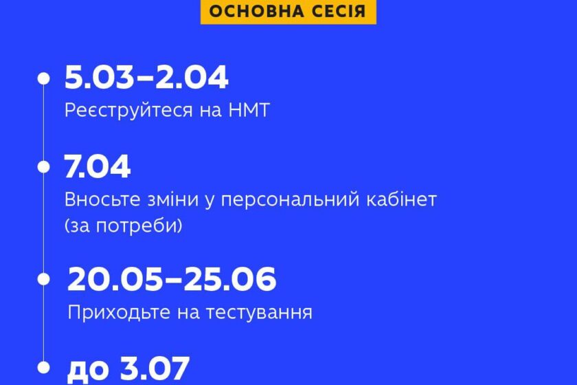 З 5 березня до 2 квітня 2026 року триватиме основний період реєстрації осіб, які мають намір узяти участь у національному мультипредметному тесті (НМТ). Порядок реєстрації визначено на відповідному порталі https://testportal.gov.ua/protsedura-reyestratsiyi-2026/ […]